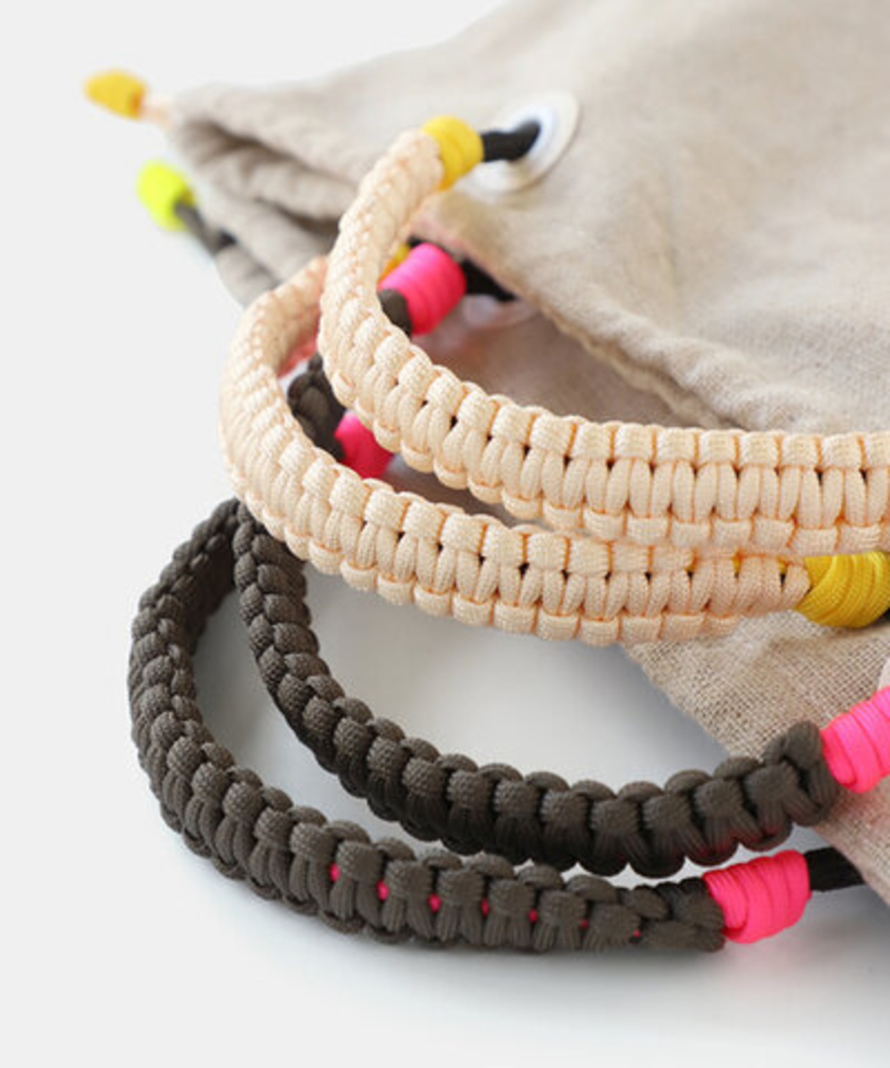 メンズライクなパラコードも3色使いにすることで、愛らしく仕上げ女性らしさを演出。
